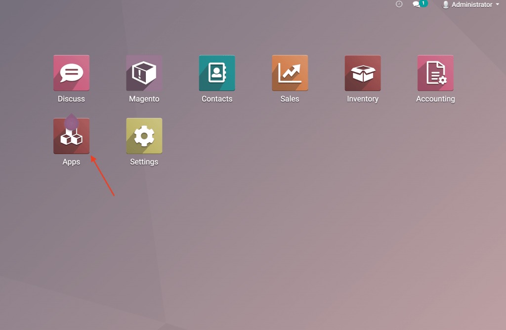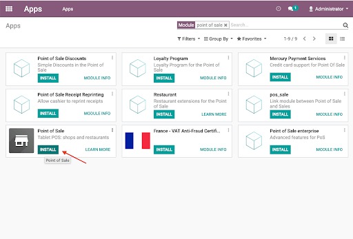 Bước 1: Bước đầu tiên là truy cập ứng dụng cài đặt app và cài đặt module điểm bán hàng (POS).