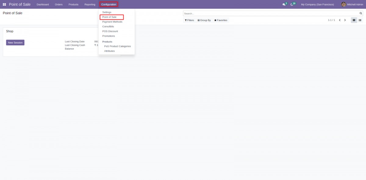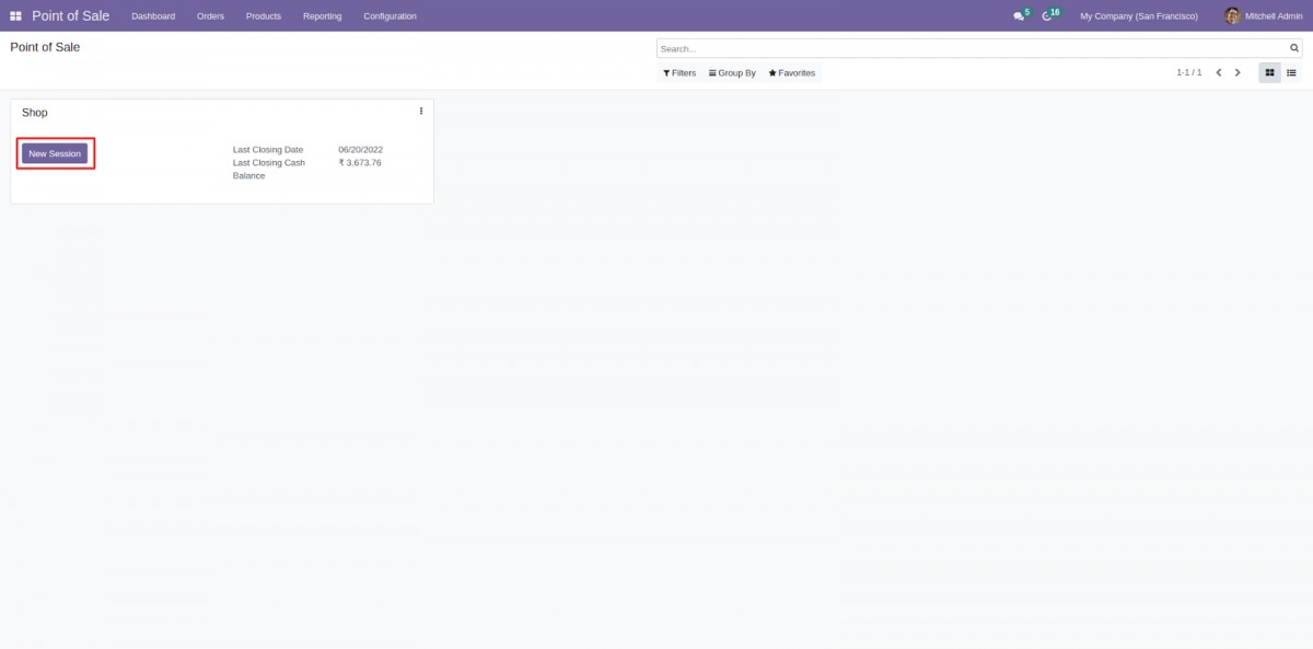 Bước 5: Sau khi hoàn tất, hãy chuyển đến bảng điều khiển và nhấp vào “New Session” để mở POS.
