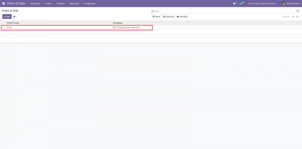 Bước 2: Khi bạn đã cài đặt ứng dụng POS, hãy đăng nhập vào quản trị viên Odoo : Point of Sale > Configuration > Point of Sale.