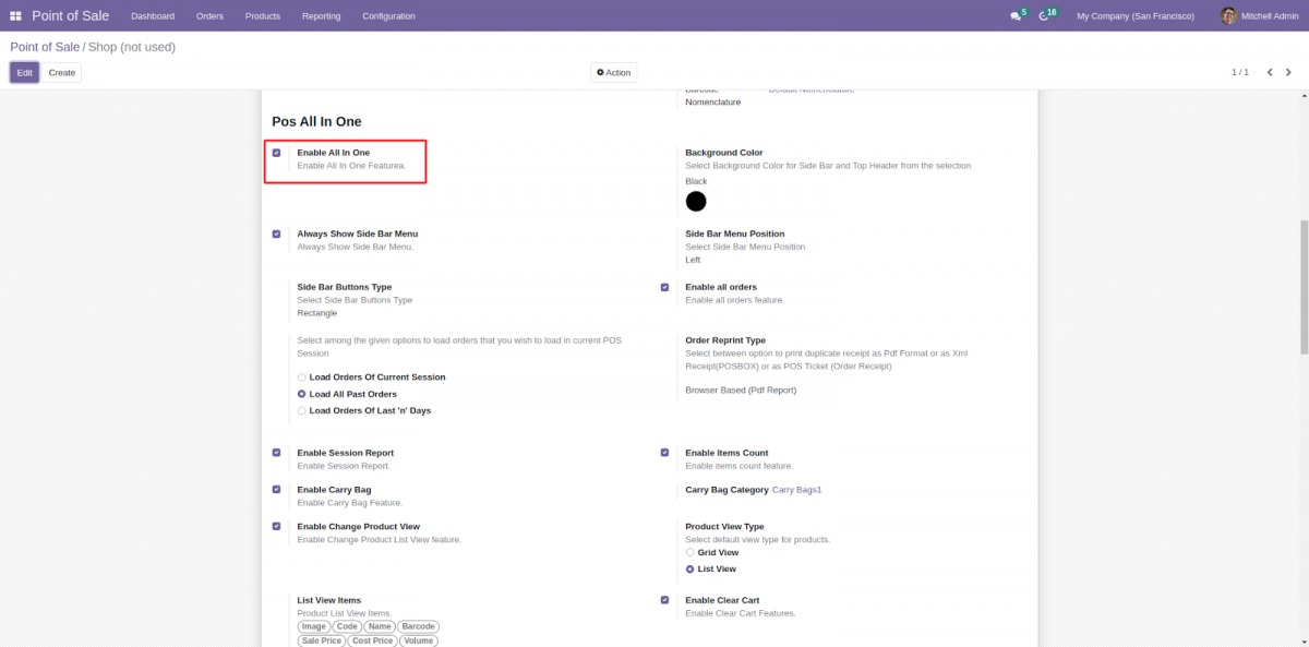 Bước 4: Trong cài đặt POS, trước hết, kích hoạt “Enable All in One” bằng cách đánh dấu vào ô bên cạnh. Sau đó, chọn tất cả các chức năng mong muốn theo nhu cầu của bạn, sau đó nhấp vào nút “Lưu - Save” để áp dụng các thay đổi.