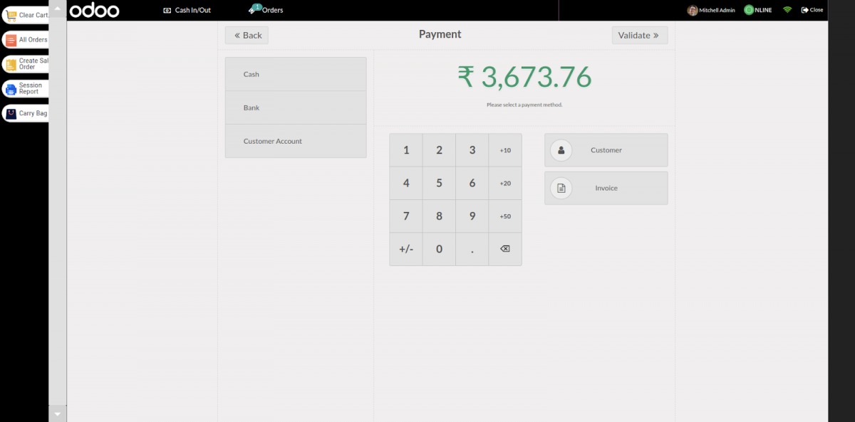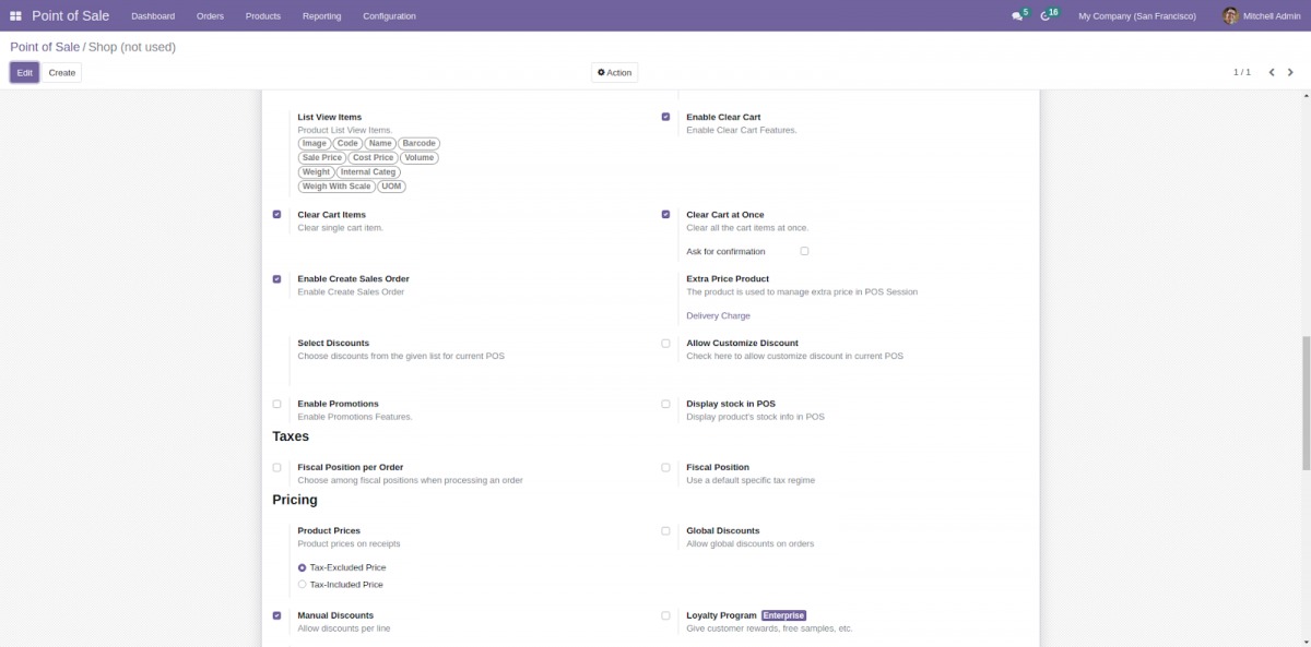 Bước 6: Trong phiên POS, bạn có thể xem tất cả các cài đặt đã bật.