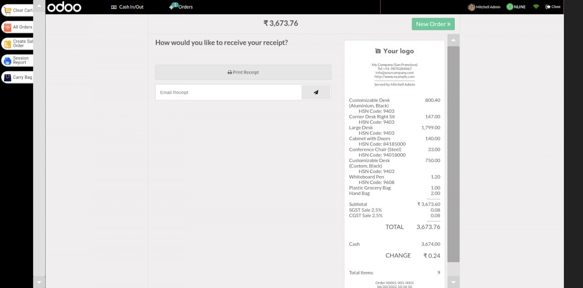 Bước 8: Trong biên lai, bạn có thể xem tất cả các chi tiết bạn đã áp dụng, chẳng hạn như số lượng mặt hàng, thuế, v.v.