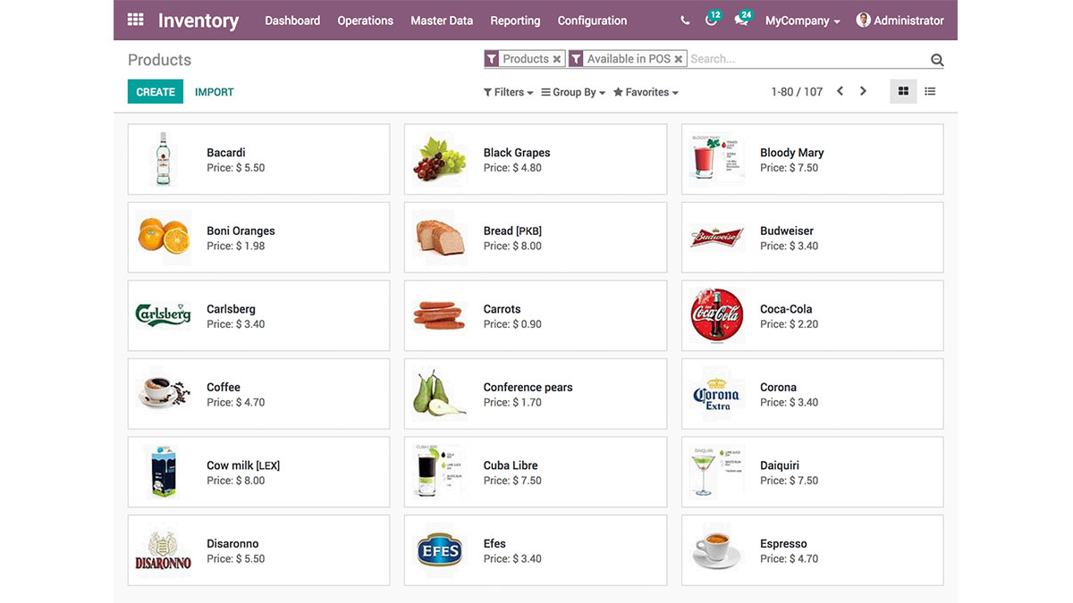 Odoo POS cũng cho phép theo dõi số sê-ri cho từng sản phẩm từ đó dễ dàng theo dõi từng mặt hàng. Ngoài ra, doanh nghiệp có thể sắp xếp sản phẩm theo tên, nhãn hiệu, nhà cung cấp, mã nhà cung cấp, đơn vị lưu kho (SKU) và màu sắc, giúp dễ dàng tìm kiếm và quản lý kho của mình. Với khả năng quản lý danh mục sản phẩm và thực hiện đếm hàng tồn kho, doanh nghiệp có thể hợp lý hóa việc quản lý chuỗi cung ứng của mình và đảm bảo họ luôn có sẵn sản phẩm phù hợp.