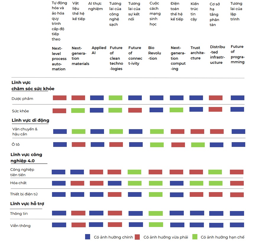 Xu hướng công nghệ và Mức độ ảnh hưởng ước tính của công nghệ lên các lĩnh vực