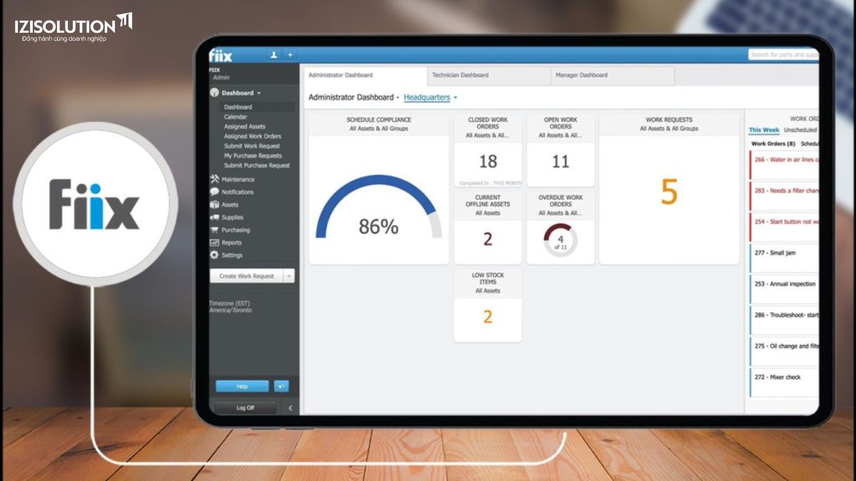 Fiix là một phần mềm CMMS dựa trên đám mây, được hỗ trợ bởi AI, được thiết kế để hỗ trợ các công ty đáp ứng nhu cầu quản lý và bảo trì tài sản của họ. Nó cho phép người dùng đưa bao nhiêu tệp mà họ cần vào danh sách việc cần làm để các nhóm có được tất cả thông tin ngay từ đầu. Fiix cũng tạo ra các dự báo và phân tích sâu sắc giúp dự đoán hiệu suất của tài sản và giảm các chi phí không cần thiết. Ngoài ra, nó tích hợp hoàn hảo với phần mềm hoặc phần cứng khác để giúp người dùng tùy chỉnh các tính năng theo nhu cầu của họ.