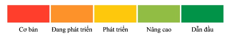 - Nâng cao: Chuyển đổi số được tích hợp trong toàn bộ hoạt động của tổ chức nhưng việc mở rộng quy mô và triển khai thành công ở nhiều bộ phận vẫn còn gặp khó khăn.