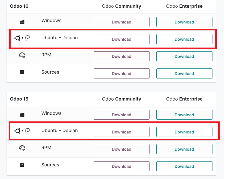 Sau khi gửi biểu mẫu, các bạn sẽ tiến hành cài đặt phiên bản Odoo phù hợp với nền tảng sử dụng thông qua đường link: