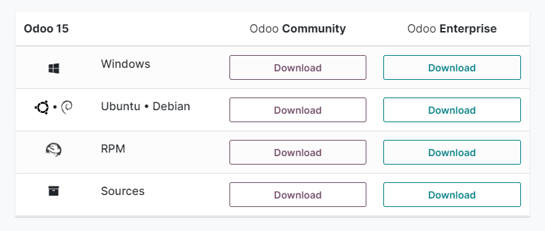 Các bạn truy cập link sau để nhận được file cài đặt Odoo 15: