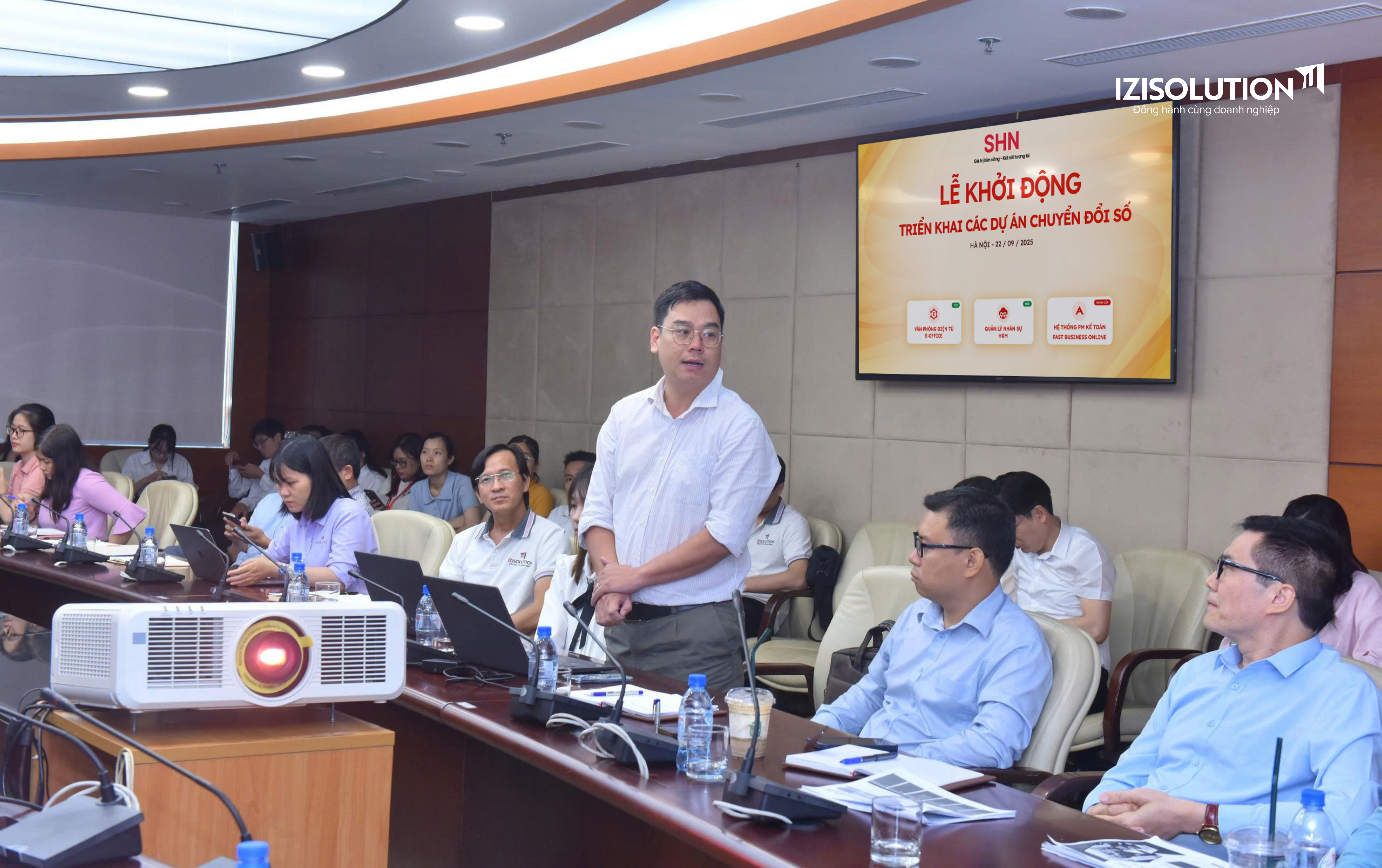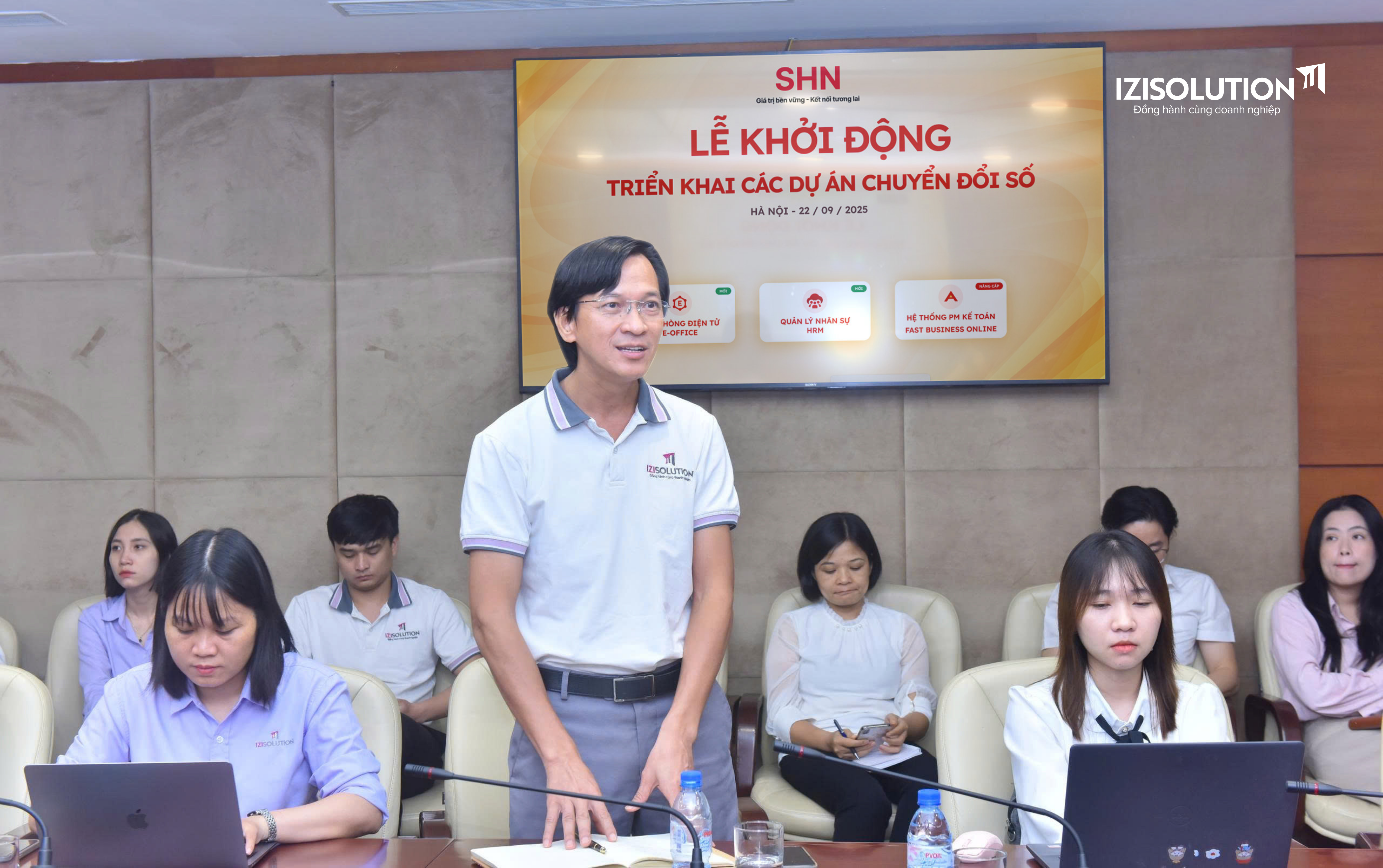 Buổi kick-off không chỉ là sự khởi đầu cho dự án mà còn thể hiện quyết tâm của SHN trong việc đổi mới toàn diện cách thức quản lý nhân sự. Với sự đồng hành của IZISolution – đơn vị giàu kinh nghiệm trong triển khai các giải pháp công nghệ, dự án hứa hẹn sẽ mang đến những thay đổi tích cực, giúp SHN tối ưu hóa quy trình vận hành và xây dựng nền tảng quản trị hiện đại, phù hợp với định hướng phát triển lâu dài.