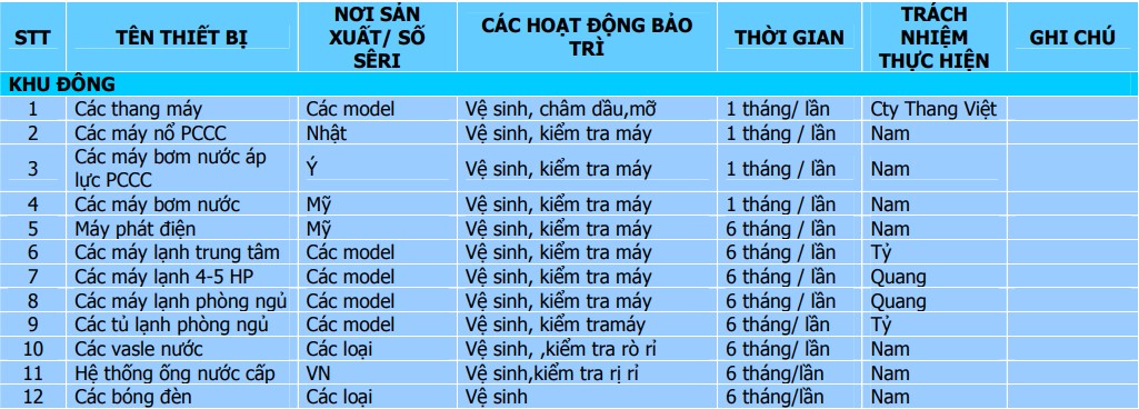 IV. Hướng dẫn lập bảng kế hoạch bảo dưỡng máy móc thiết bị