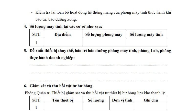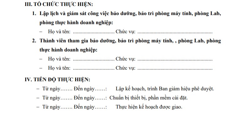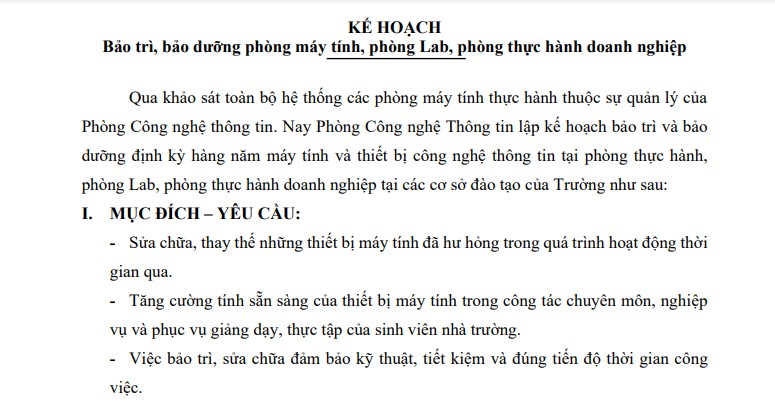 Dưới đây là mẫu kế hoạch Bảo trì, bảo dưỡng phòng máy tính, phòng Lab, phòng thực hành của một trường học: