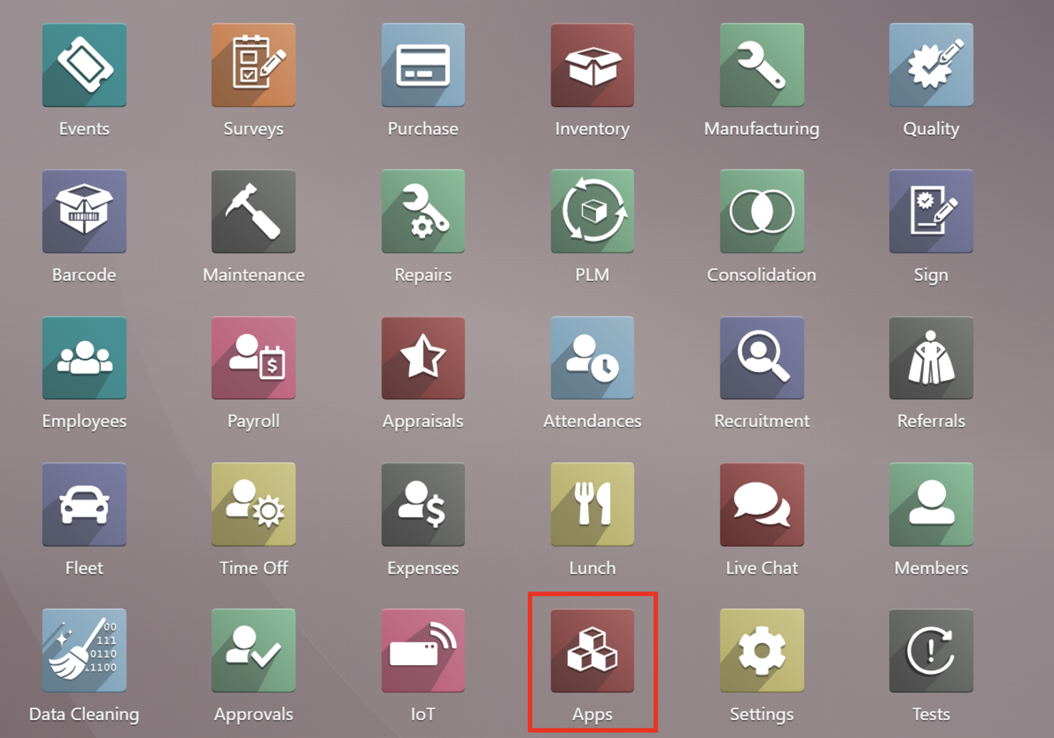 Sau khi đăng nhập vào tài khoản Odoo, bạn hãy click đúp chuột vào Apps để mở cửa hàng module.