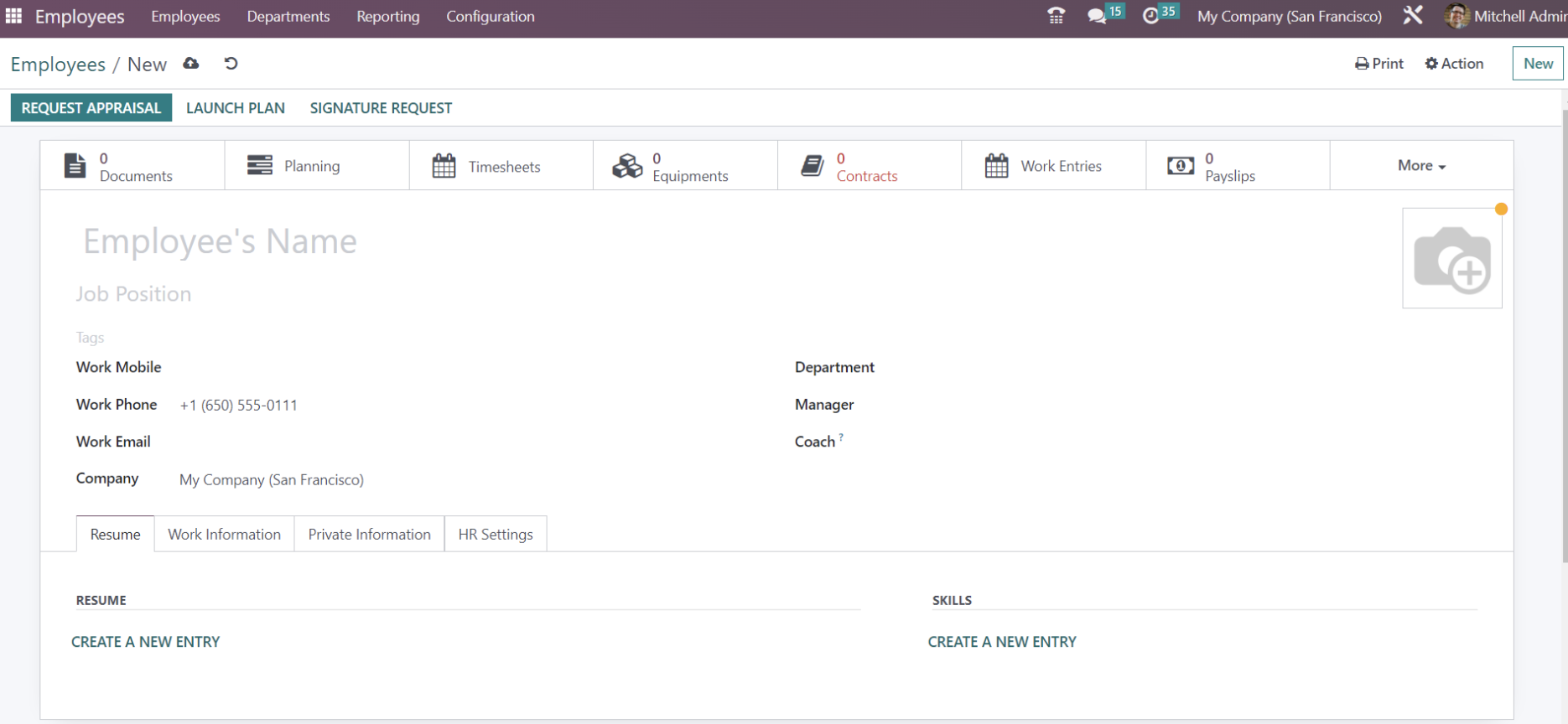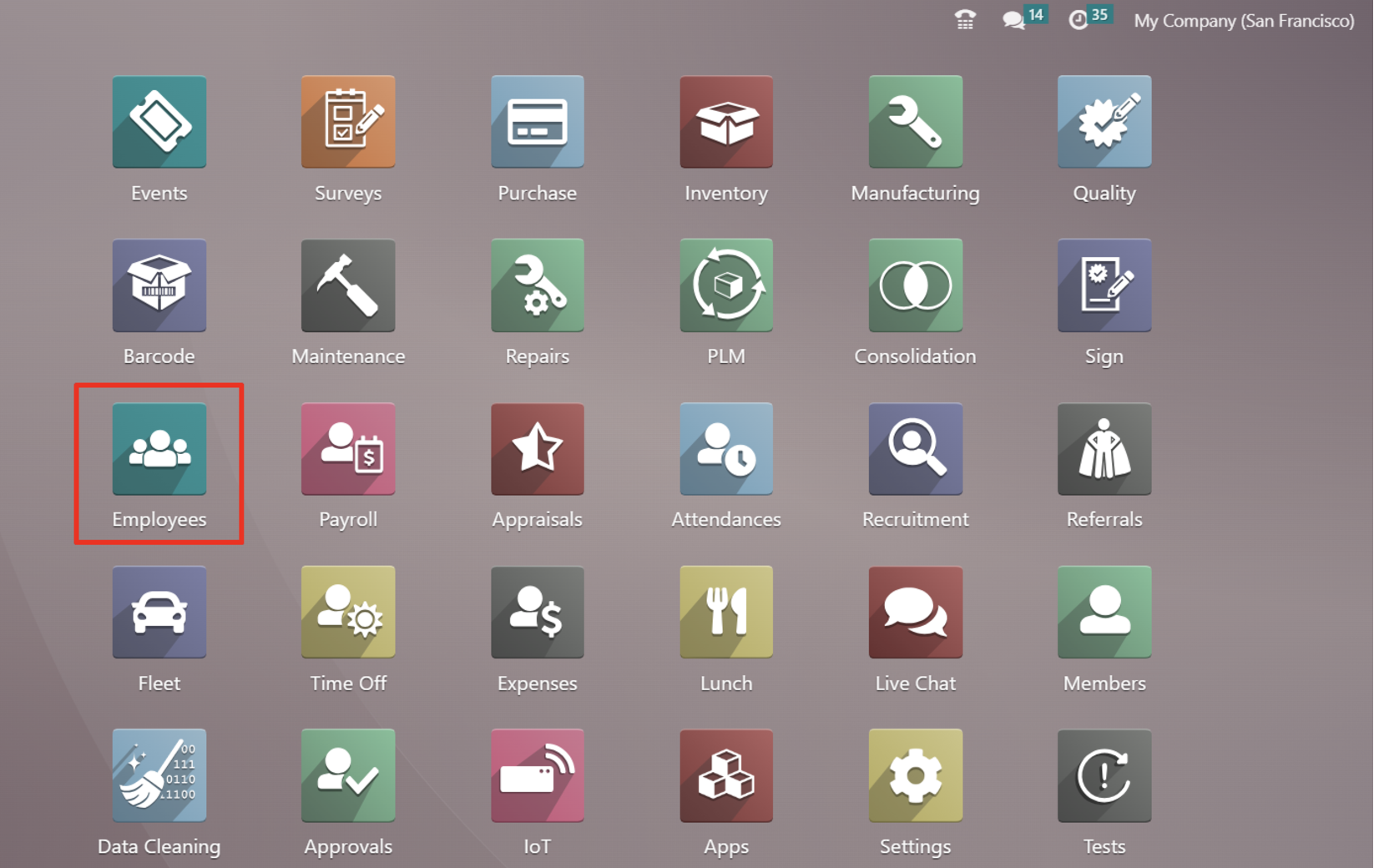 Tại menu, lựa chọn module Employees. Tại đây, bạn sẽ thấy được danh sách các nhân viên hiện tại.