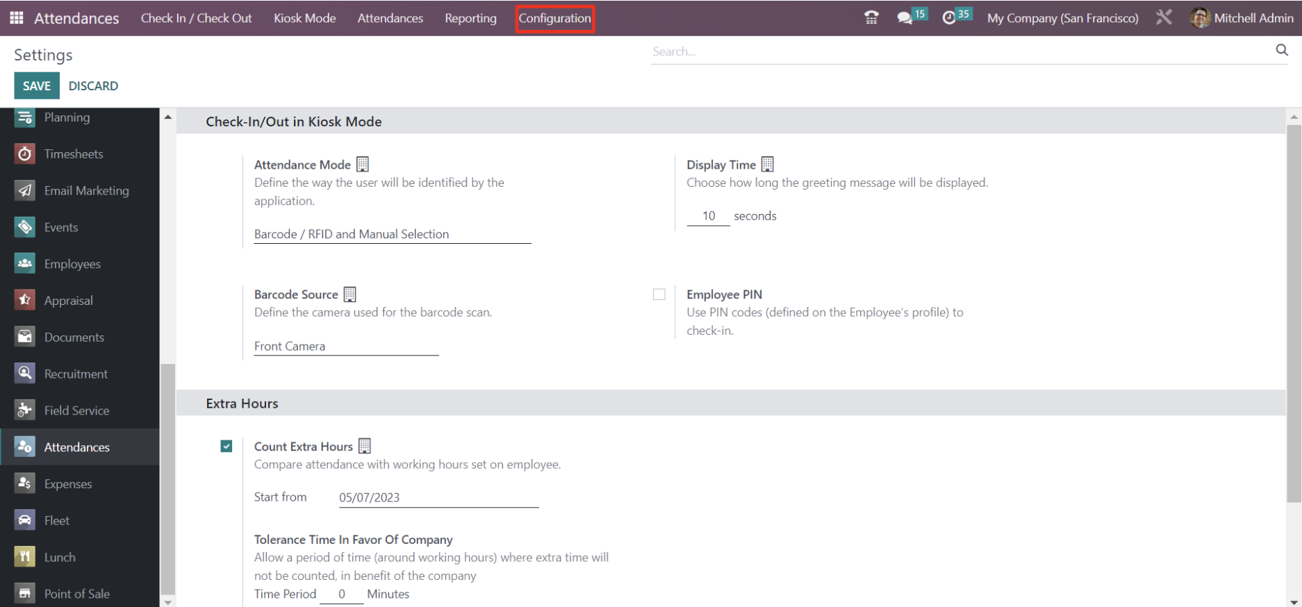 Bước 4: Thiết lập cách chấm công phù hợp trên Odoo Attendance