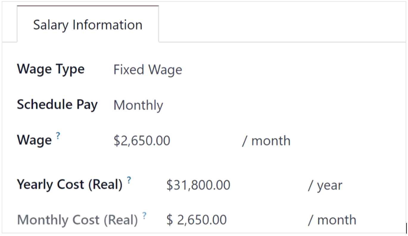 - Chi phí hàng năm (Thực tế): nhập tổng chi phí hàng năm mà nhân viên phải trả cho chủ lao động. Khi giá trị này được nhập, Chi phí hàng tháng (Thực tế) sẽ tự động được cập nhật.