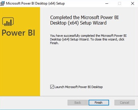 - Cài đặt Power BI Desktop thành công. Nếu bạn muốn khởi động chương trình, giữ nguyên như hình và nhấn nút Finish.