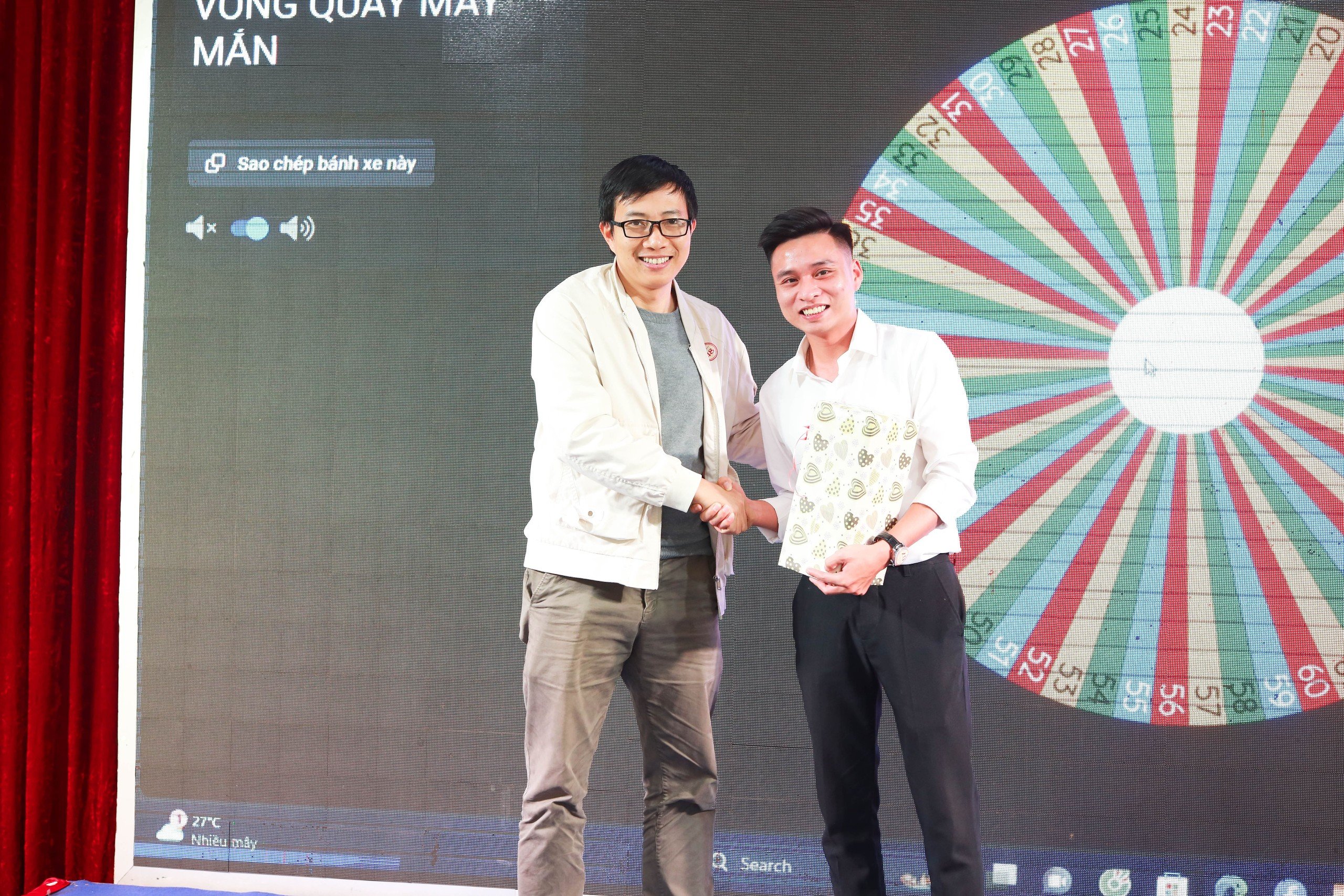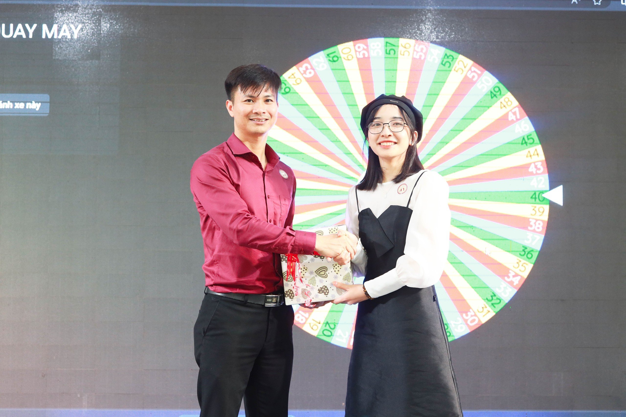 Cuối buổi tiệc tổng kết, khách mời tham dự và các thành viên IZI tham gia hoạt động quay số trúng thưởng, mang ý nghĩa may mắn đầu năm.