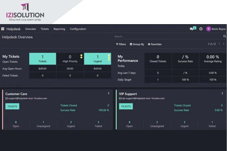 Odoo Helpdesk là một module thuộc hệ sinh thái phần mềm quản trị doanh nghiệp Odoo, được thiết kế để giúp doanh nghiệp quản lý và xử lý các yêu cầu hỗ trợ từ khách hàng một cách hiệu quả. Từ việc tiếp nhận yêu cầu, phân công nhiệm vụ, theo dõi tiến độ đến việc đánh giá hiệu suất đội ngũ hỗ trợ, tất cả đều được thực hiện trên một nền tảng duy nhất.Phiên bản 18.0 của Odoo Helpdesk mang đến nhiều cải tiến đáng kể, từ giao diện người dùng thân thiện hơn cho đến các tính năng tự động hóa mạnh mẽ, giúp doanh nghiệp dễ dàng đáp ứng nhu cầu ngày càng cao của khách hàng.