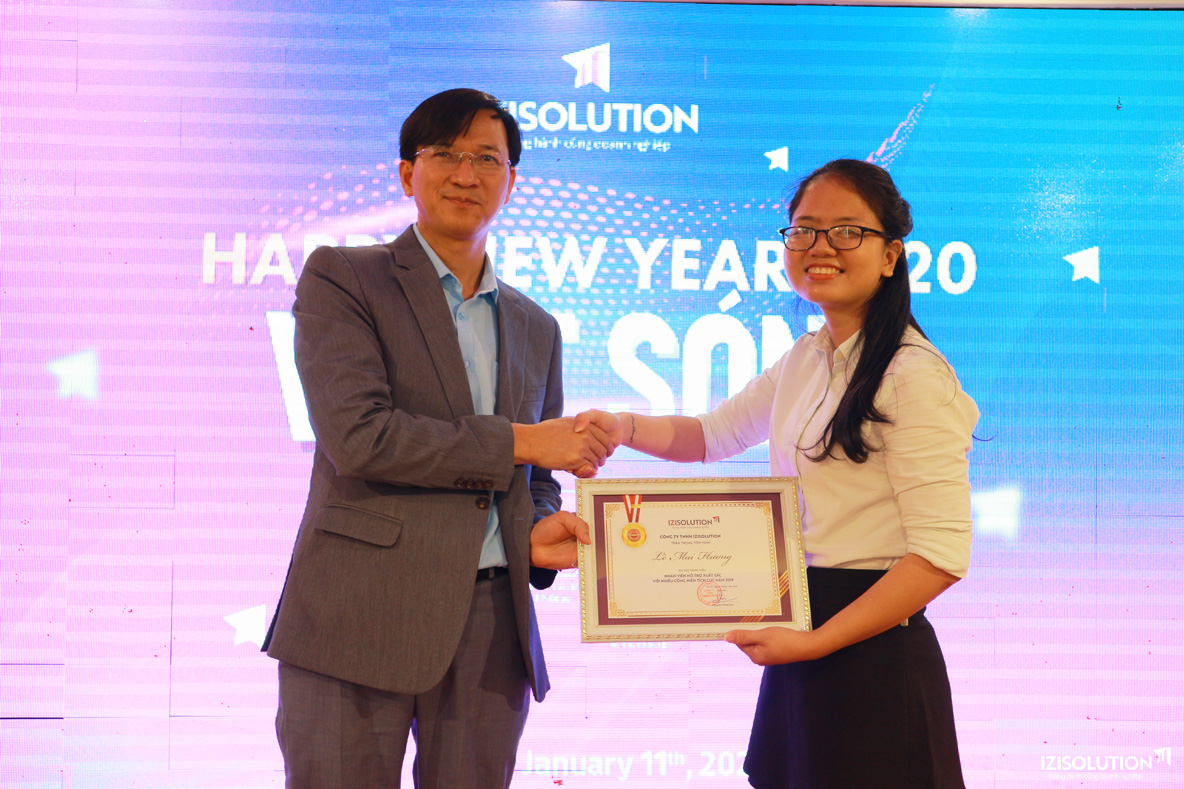 Đại diện Ban Giám đốc cũng đã thay mặt tập thể IZISolution trao tặng các danh hiệu cho các cá nhân, đội nhóm có những cống hiến tích cực trong suốt một năm vừa qua.
