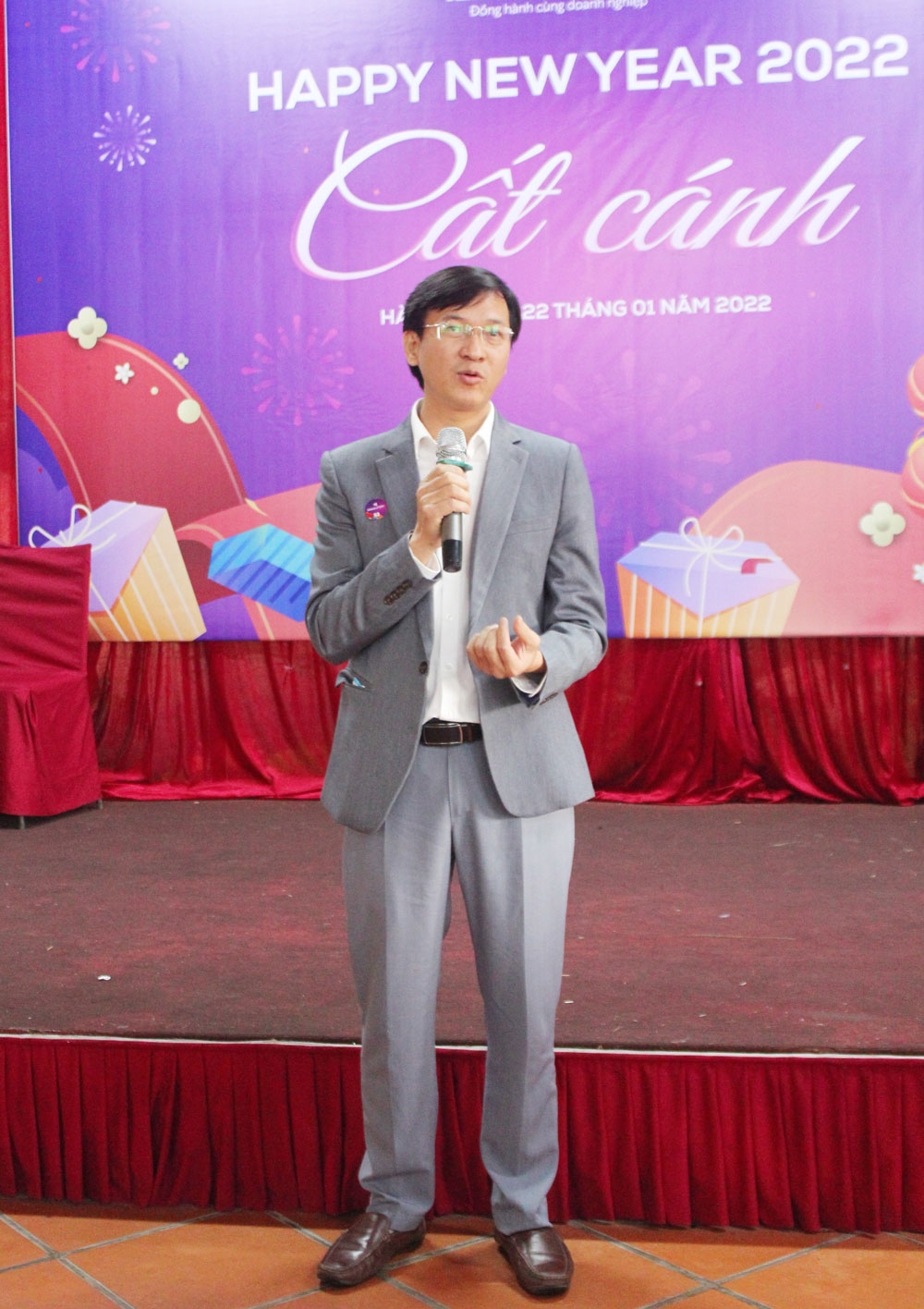 Phát biểu khai mạc chương trình, anh Nguyễn Hồng Sơn - đại diện Ban giám đốc IZISolution tổng kết sơ bộ về kết quả đạt được năm 2021 và định hướng mục tiêu năm 2022. Đồng thời thay mặt công ty gửi lời tri ân, chúc mừng năm mới tới toàn bộ đội ngũ cán bộ nhân viên công ty và các khách mời, đối tác.
